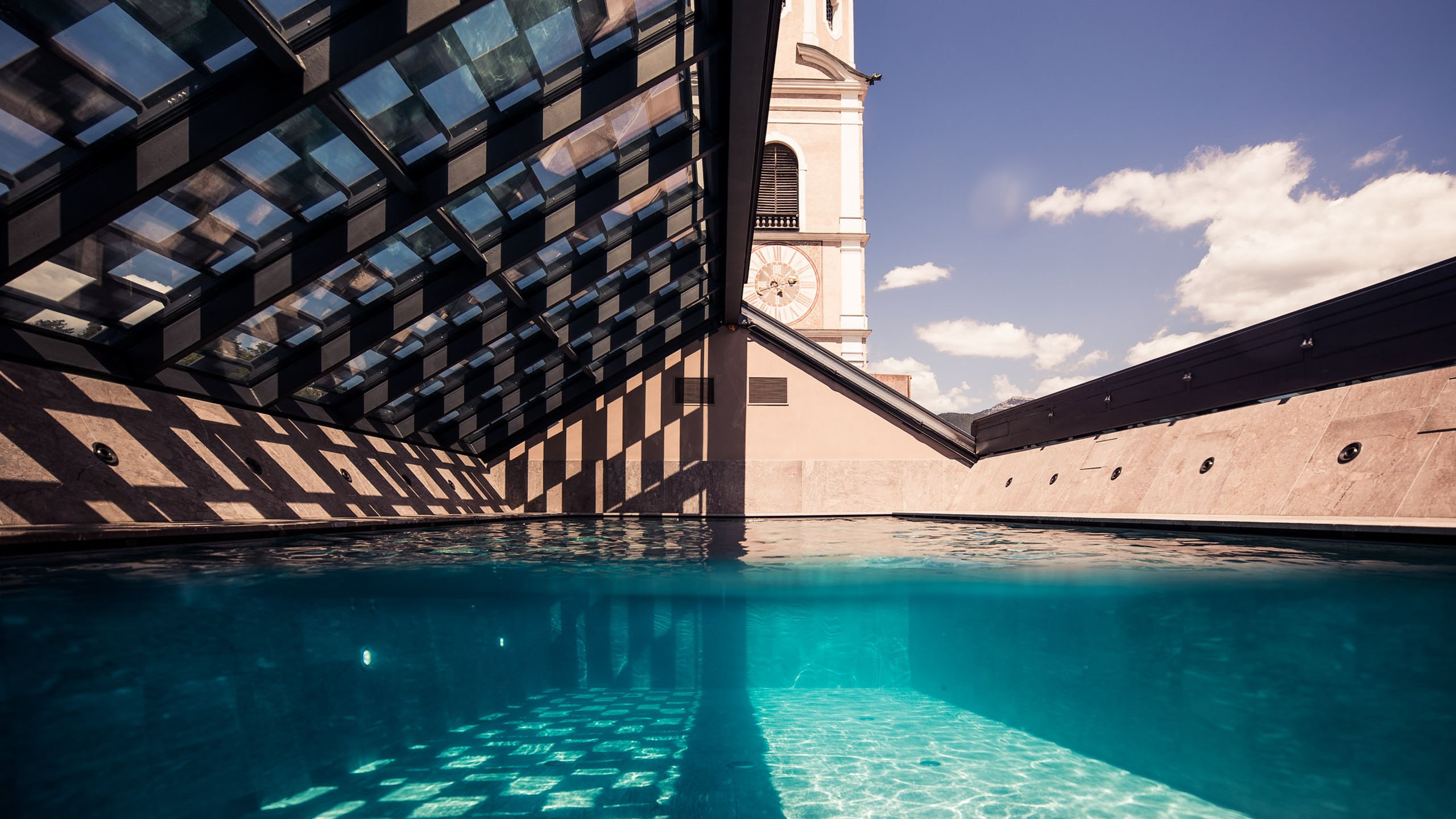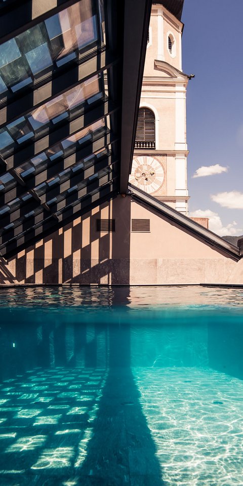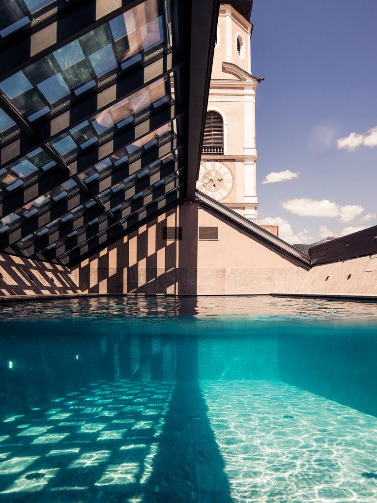 Our hotel is located in the historic centre of Kastelruth. You can watch the lively coming and going in the village while enjoying coffee and cake in our bistro or forget time while gazing at the South Tyrolean sky in our extravagant sky pool. Our design hotel with its luxurious rooms and suites offers everything you might need to make your stay as perfect as can be.